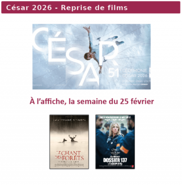 Les précédents Coup de Cœur Surprise diffusés au Cinémavia : Elle n'entend pas la moto, l'inconnu de la Grande Arche, le retour du projectionniste, Un monde fragile et merveilleux...